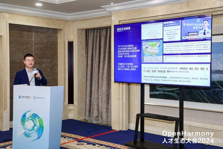 北京中安未来科技有限公司文通集团合伙人兼华南大区总经理谭军对基于OpenHarmony的OCR护照鉴伪仪多场景应用进行了分享,介绍其OCR护照鉴伪仪在机场口、酒店前台、金融机构的广泛应用,产品凭先进技术为出入境管理、酒店、金融等多领域筑牢安全防线,推动数字化智能化身份验证进程。