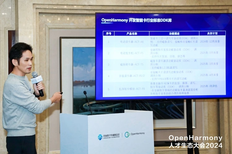 深圳市驰卡技术有限公司研发经理戴建国分享了公司基于OpenHarmony打造的发卡机和读卡器,在智能卡行业中开发的OpenHarmony新产品于金融、航空等场景的应用案例。