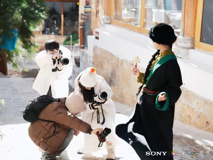 风光组和人像组的摄影师前往松赞林寺、独克宗古城、普达措、梅里雪山等地进行拍摄。Alpha 1 II虽然配备了 5010 万像素的传感器,但 743 克的重量对于一台专业相机来说依然相当轻巧,搭配不足920克的FE 28-70mm F2 GM即使在高原长时间蹲守拍摄也不会有很大负担。改进后的手柄设计和快门按钮位置带来了更好的握持感,新增的深取景器眼罩让摄影师们在强烈的日光下,依然能清晰地看到取景画面。作为索尼首款F2大光圈标准变焦G大师镜头,FE 28-70mm F2 GM在拍摄时有着定焦般的虚化和纯净的画质,无论是阳光下跃动的五彩经幡、还是湖畔与小羊嬉戏的倩影都被清晰的记录下来。Alpha 1 II 的高感光性带给摄影师们即使面对雪山复杂环境,也能稳稳出片的信心。在雾浓顶迎宾台,即使在多变的光线环境下拍摄人像,提升后的降噪表现依然出色,让摄影师们可以放心地提高 ISO,还原皮肤质感。值得一提的是,此次旅程中星空摄影师董书畅拍出了令人惊喜的作品,他分享表示:“手持Alpha 1 II拍摄效果很稳定,流畅的拍摄体验让香格里拉的星空被定格,FE 28-70mm F2 GM纯净的画质让星轨的运动轨迹得以流畅完整呈现。”
