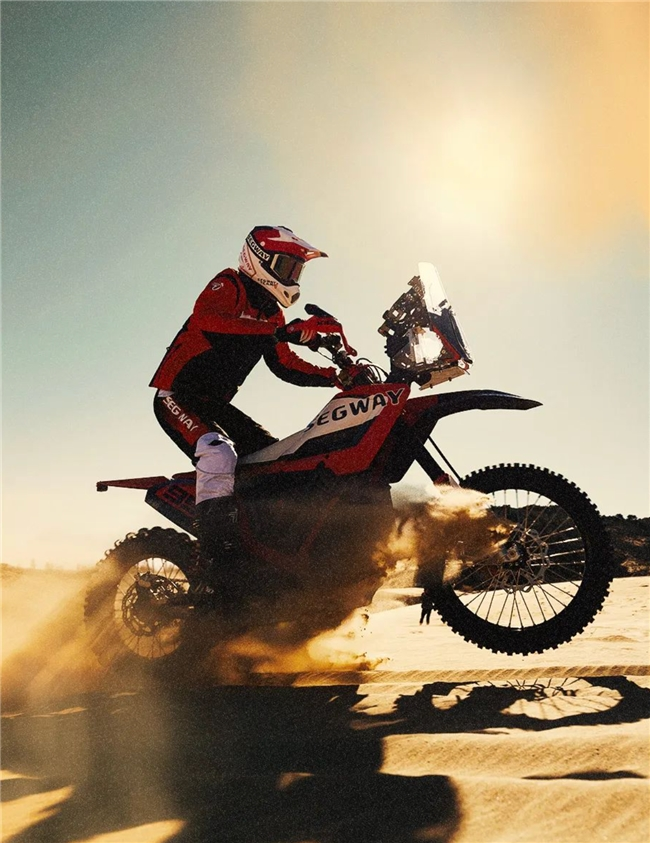 作为新能源组别的参赛者,Segway车队的表现将引领电动摩托车在拉力赛场上的高能新浪潮。而这次,Segway以同样的无畏精神成立越野拉力车队,首次便将目标锁定在达喀尔拉力赛这个世界级的挑战上,再次证明了其在极限运动领域的雄心壮志。这次参赛,不仅是对Segway产品力的一次重大考验,也是向全球观众展示电动越野摩托车在极限环境下的巨大潜力。