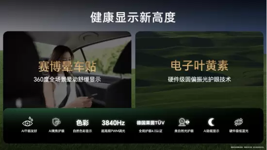 屏幕领域,荣耀加速引领健康显示赛道,在安卓手机阵营中首次搭载晕动舒缓显示功能,有效缓解出行中产生的晕车症状。