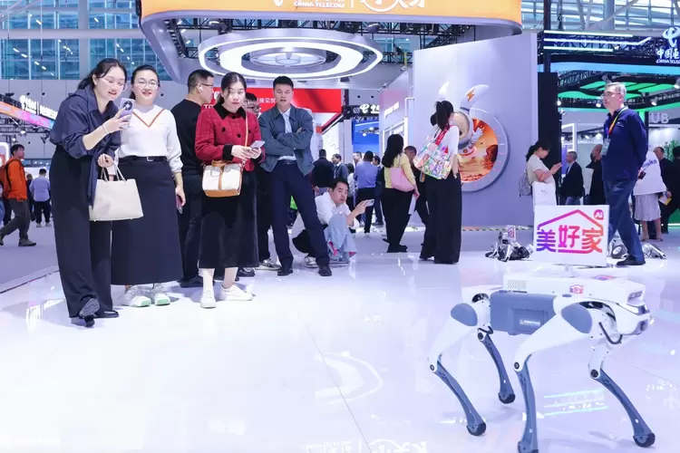 从智能制造到医疗服务,从物流运输到餐饮服务,机器人技术从千行百业,逐渐走入寻常百姓的日常生活。进入数字生活展区机器人专区,科技感十足的四足机器狗做出跑、跳、坐等动作,吸引了众多参展观众的关注。