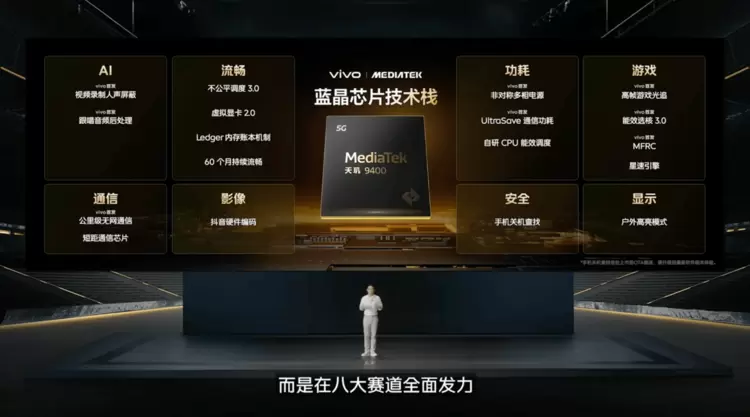 蓝厂与联发科已有多年的合作基础,双方的联合调校覆盖性能、功耗、AI、游戏、通信等八大关键领域,这种长期的合作已经带来了肉眼可见的成果。比如,蓝厂的天玑9400被许多KOL誉为“能效大魔王”,其在性能与能效平衡上的表现赢得了用户广泛认可。