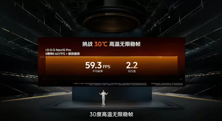 Neo10 Pro的这种灵活调度能力,不仅提升了设备的整体性能,还在续航和温控表现上达到了新的高度。比如以热门手游原神为例,即便在模拟30摄氏度高温环境下,Neo10 Pro 依然能够以平均59.3帧畅玩,充分展现了“满血双芯战神”的实力。