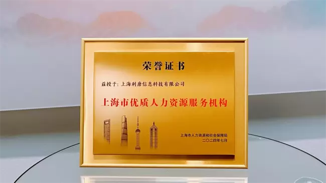 荣耀时刻!利唐i人事HR系统获评「上海市优质人力资源服务机构」