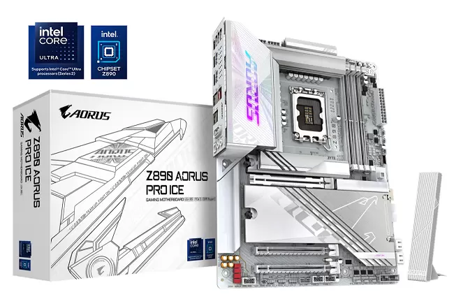 其中Z890 AORUS PRO ICE 电竞冰雕不仅完美继承了上代Z790M冰雕纯白外观特性,还进一步丰富细节,将主板的接口也实现了纯白一体化,更具个性化。用料方面,该主板采用16+1+2相、单相90A的供电,内存还首次引入了CUDIMM支持,可以实现9500MHz的超高内存频率,并且D5黑科技进一步升级为了2.0版本,通过AI超频操作更简单、方便有效。