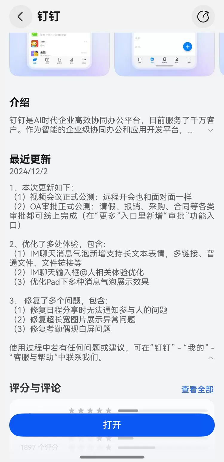 华为Mate70系列今天正式开售,不到2小时热门机型在官网均已售罄。Mate70系列到手即可升级原生鸿蒙,也是这款手机的一大亮点。在应用方面,原生鸿蒙应用商店最近一直有新应用、新版本上架,这不就在前两天,办公必备应用钉钉也再次更新了,视频会议和OA审批功能正式开启公测,需要使用钉钉的小伙伴们,快去应用市场里更新一下!