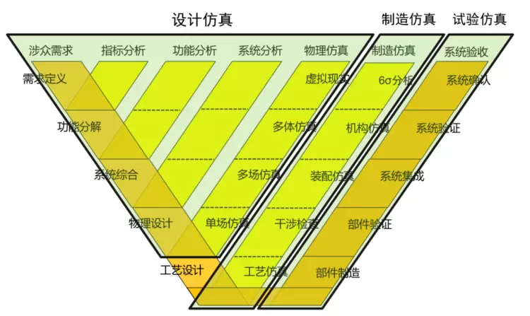 现在,仿真可以用在V模型所有过程:设计阶段、制造阶段和验证阶段。