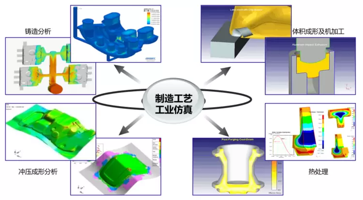 现在的仿真越来越多地应用在制造阶段。过去制造过程也是串行的,当你在车床上制造发现工艺不通时,再回来修正又是大量的成本和时间。现在仿真参与到制造过程,让制造在虚拟环境中试制并优化工艺,可以进行铸造、切削、成形和热处理等的虚拟制造,然后实现一次制造成功。
