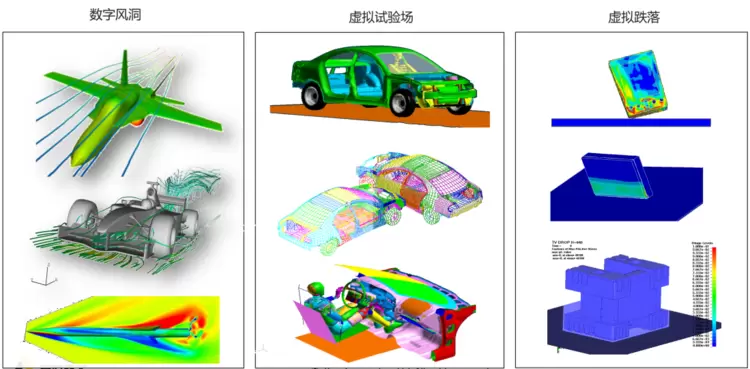 过去我们常常用实物做试验,现在越来越多的试验被计算机替代。本来仿真的目的是让实物试验越来越少,但在很多行业标准要求下,实物试验不可缺少,没有实物试验报告,汽车不允许上路,飞机不允许上天。过去做试验往往需要大量的时间和成本,试错很多次才能得到一次有效的试验报告。现在,在你做实物试验之前,先在计算机中把试验做完,然后进行实物试验,往往可以一次成功,一次获得有效的试验报告。数字风洞、虚拟试验场和虚拟跌落是我们常做的试验仿真。