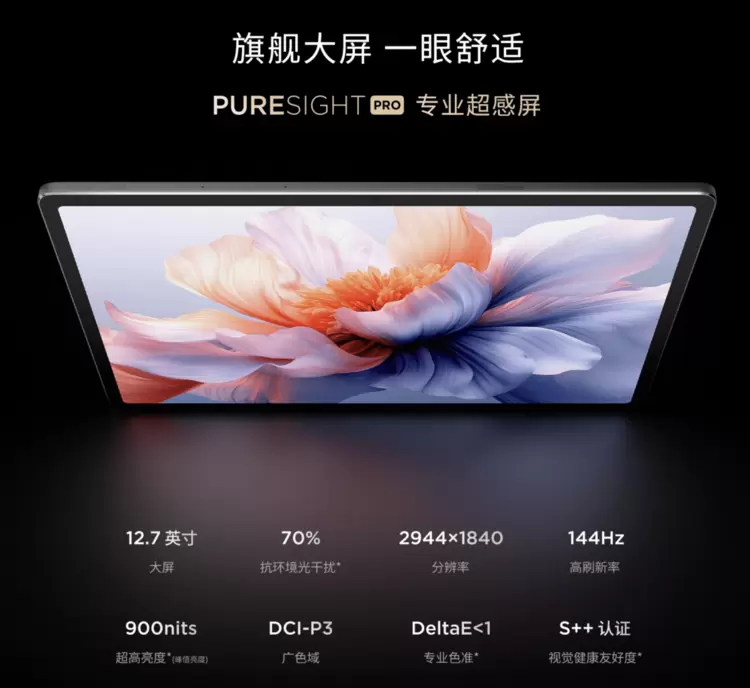 12.7英寸2944×1840分辨率超清大屏是YOGA Pad Pro的另一大亮点。全天候超感显示技术配合900nit峰值亮度,让阳光下户外工作也能清晰看清屏幕内容。创新的无损防眩光设计不仅有效降低屏幕反光,更让显示对比度几乎无损,使得在咖啡厅等明亮环境下办公也能保持出色视觉体验。三重护眼认证的加持——德国莱茵TÜV高清晰度认证确保显示细腻,无频闪认证和硬件级低蓝光认证则让深夜加班和长时间阅读也不会感到明显疲劳。