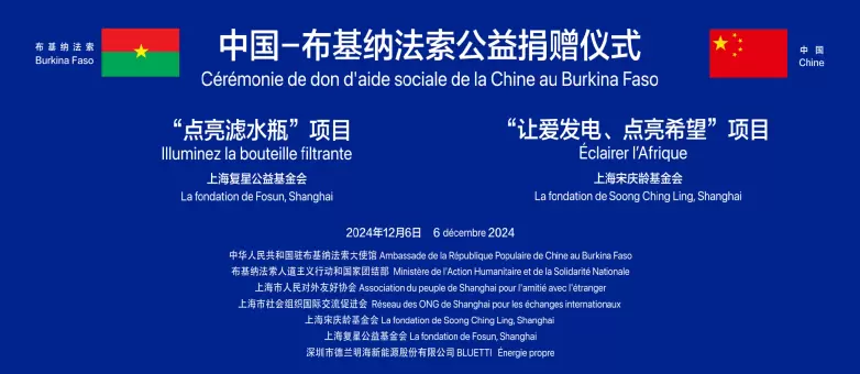 此次捐赠活动,在上海市人大常委会副主任陈靖、上海市国际社会组织国际交流促进会会长景莹、中国驻布国商务参赞席威、中国驻布大使馆的见证下,沪促会副会长兼复兴基金会秘书长俞曦,及德兰明海西非市场总监于涛,向布基纳法索团结和人道主义行动部部长Nandy进行了交接。