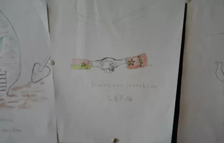 图为受捐地区学生以中非合作为主题创作的绘画作品