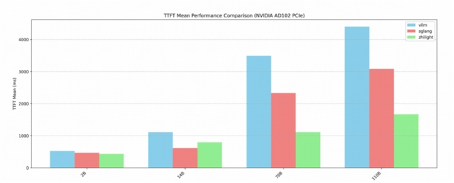 如上图,模型规模达到 70B 时,多卡推理受卡间通讯影响愈加明显,ZhiLight 在 TTFT 指标上要明显优于目前主流的开源推理引擎,并且在 110B 规模情况下 ZhiLight 的优势进一步扩大。