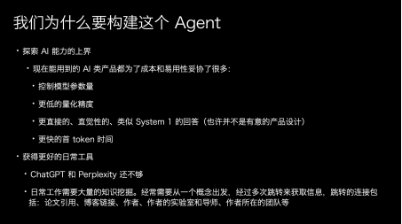 从 Agent 到 AGI 我们还有多远?百川智能大语言模型资深算法专家王宇龙从一个探索 Agent 极限实验开始,详细介绍了为什么要构建 Agent。