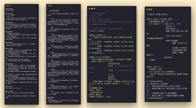 李继刚在会上分享了大量 Prompt 实战经验。他认为,去年 Prompt 的关键词是从短到长,今年的关键词则是从长到短,但最本质的,还是要与大模型实现「共振」。ChatGPT 兴起时,他和很多人一样,给大模型写很长的 Prompt,但今年开始,他更习惯把 Prompt 压缩成一个词来开启大模型的解压过程。在他看来,用最清晰、简洁的表达,指向核心本质,才是切中肯綮的最优解。