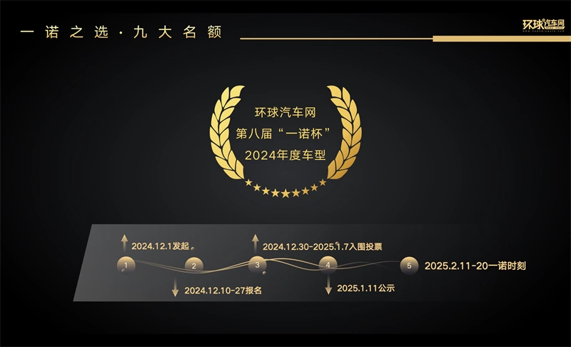 在新品如潮涌的汽车市场,一诺杯年度车型将聚焦产品力,甄选出【经受住市场严苛考验】、【销量成绩斐然】,且【消费者口碑极佳】、【在流量为王的时代占据大量关注】的全优者。自今日起至12月27日,面向2024年内所有上市新车开放报名;12月30日,将公布入围名单并开启大众评审投票环节,共同决定本年度获奖车型;最终结果将于2025年1月11日公示。