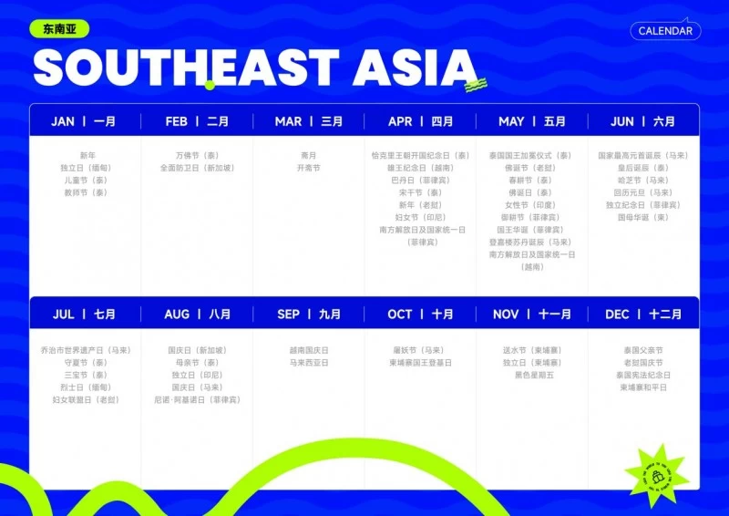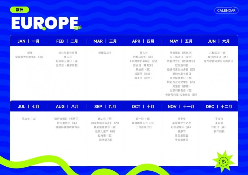 同时,为便于用户更专注地了解和规划特定地区的市场活动,针对热门目的地分别整理了该地区2025年的重要营销节点,提高了日历的实用性和用户友好性。