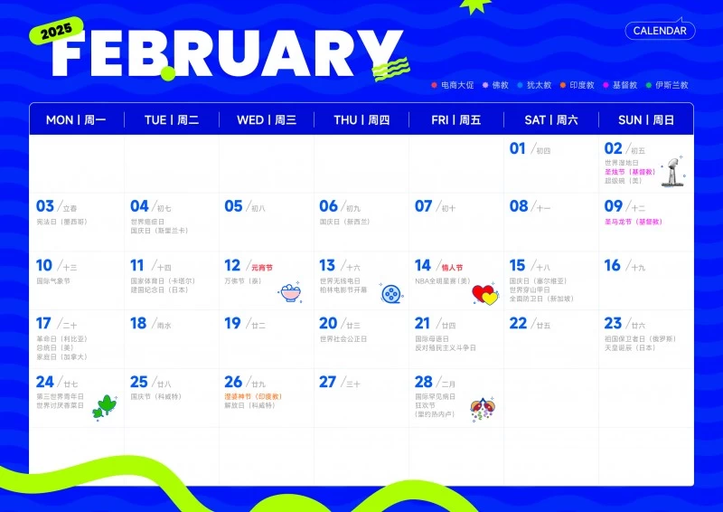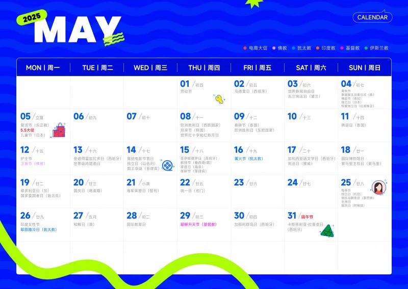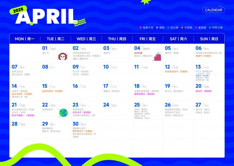 随着品牌全球化旅程的深入,本土化是重中之重。钛动科技【2025出海营销日历】提供全球三大宗教——基督教、伊斯兰教、佛教的重要节庆信息,并用不同颜色区分,有助于企业更好地理解并尊重不同文化,确保营销内容在全球范围内都能够得到认可和接受。