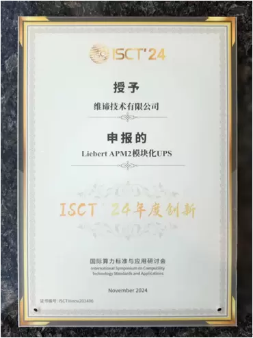 主办方同时揭晓了相关评选结果,维谛技术(Vertiv)旗下的VertivTM Liebert®APM2模块化UPS荣膺“ISCT' 24年度创新”大奖。