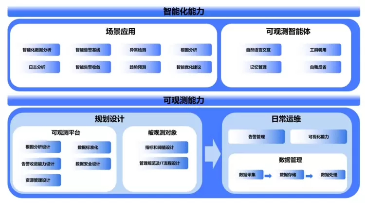 该模型标准规定了云计算智能化可观测性能力成熟度模型,适用于可观测大模型、云厂商可观测性平台、可观测独立厂商的各类产品、可观测建设方案等,适用于企业进行云计算平台和云上环境的应用程序进行智能可观测的能力建设参考。
