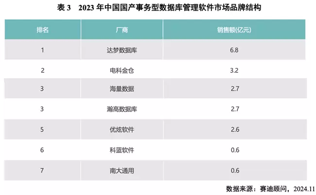 赛迪顾问发布《中国事务型数据库市场研究报告》,海量数据位居前三