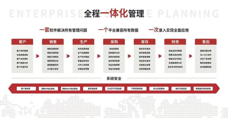 作为设备制造企业的深度合作伙伴,ERP领域的头部品牌智邦国际表示:只有将企业各个部门与环节全部打通,才能发挥企业整体势能,进而实现彻底转型,同时首倡“企业一体化”概念,以企业内部、横向、纵向和底层数据4个方面共同发力,全面破局企业管理效能提升。