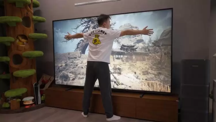 玩游戏,怎么能少得了大屏呢?大屏给出的视觉冲击力,总能将我们的视觉中心瞬间抓住,使人沉浸到剧情之中。就像海信电视100 E8N Ultra玩《黑神话:悟空》时,我们无数次被那些神兵天将的场面深深震撼,除了大屏表现的细节到位,这种巨幅的视野加持也是不容小觑的。