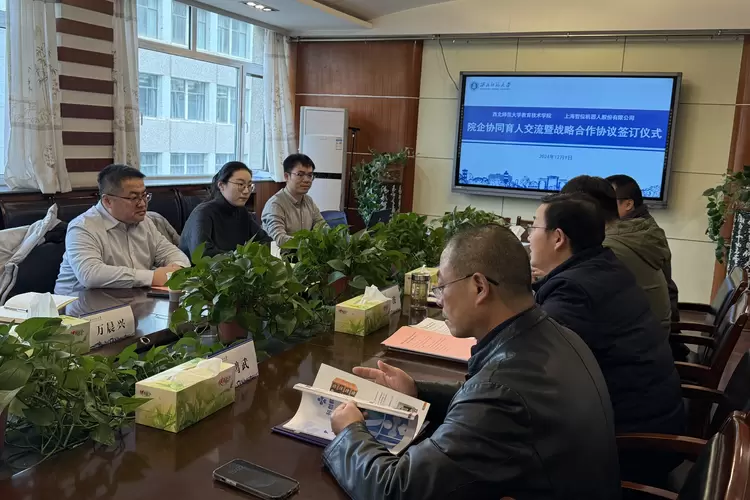 2024 年12 月9 日,上海智位机器人股份有限公司(DFRobot)与西北师范大学教育技术学院“院企协同育人交流暨战略合作协议签订仪式”在甘肃省兰州市西北师范大学云亭校区举行。西北师范大学教育技术学院党委书记刘波教授,副院长宿庆副教授,博士生导师杨鸿武教授,教育信息技术系副主任张靖副教授,上海智位机器人股份有限公司副总经理桑史焘,蘑菇云科创教育总经理余静,蘑菇云科创教育副总经理雷川,蘑菇云科创教育西北销售经理万晨兴出席了签约仪式,在签约仪式前双方进行了深入座谈。