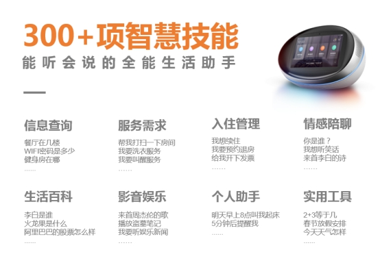 信息查询、服务需求、入住管理、情感陪聊、生活百科、影音娱乐、个人助理、实用工具……