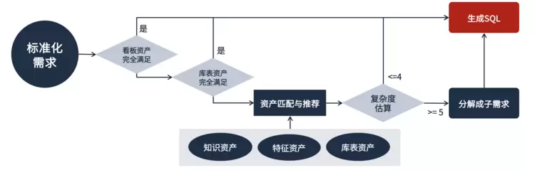 在需求构造上,首先定义AI和人都能理解的需求标准,基于定义好的需求标准,匹配需求案例和行业知识,将人提出来的需求改写成标准的需求格式,消除AI理解需求的歧义。此外,当数据需求较为复杂时,需求Agent能把复杂需求分解成简单的子需求,降低AI生成难度,通过工程化方式组合成最终结果,确保稳定可控的交付质量。