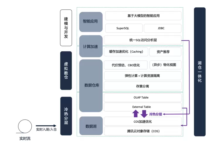 为了能够支持对实时的明细数据进行探索和分析,仅仅把SQL写对是不够的,传统的数仓架构(例如:Lambda)大量计算是T+1离线进行的,不能支持对所有的数据进行实时快速查询。为此,UData对数据底座进行了升级,采用湖仓一体的架构,通过数据实时接入、虚拟数仓、冷热分层等技术实现对实时明细数据的高效查询。同时,UData建设了一个成本效率优化引擎,围绕资产热度、执行速度、数据量级三个方向快速定位需要优化加速的资产,通过资产整合、物化视图等方式,能够让数据低成本、高效率的使用。