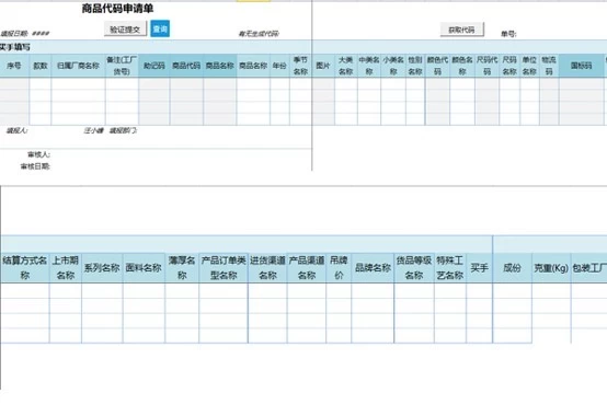 提取商品代码申请单内容,填入百胜ERP标准商品资料表;提取商品代码生成器,行间匹配填入商品代码资料;