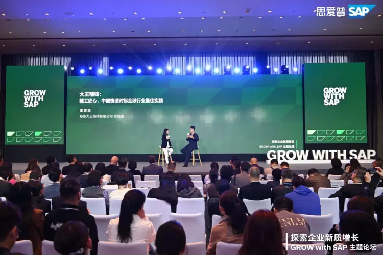 SAP大中华区GROW with SAP负责人吴女士与丹东大王精铸有限公司总经理王奕浩先生在会议现场进行了以“精工匠心,中国铸造对标全球行业”为主题的对话。