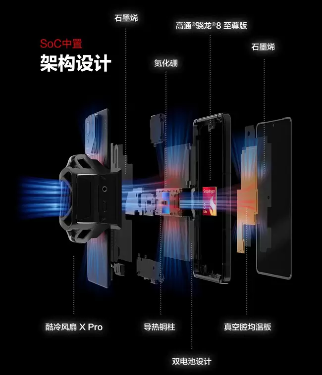 极致的性能释放离不开高效散热的助力,ROG9采用矩阵式液冷散热架构9.0,在保留SoC中置架构设计的基础上,将其中的石墨烯体积增加57%,冷却效率提升12%。外置散热神器酷冷风扇X也升级为Pro版,全新引入AI温控制冷系统,能根据手机当前状态智能调温,有效减少资源浪费。除此之外,本次上新还为各位玩家带来了便携散热法宝:冰川液冷壳,内置复合式材料真空腔均温版,能使手机整体温度降低17%,激战游戏也能保持舒适手感。