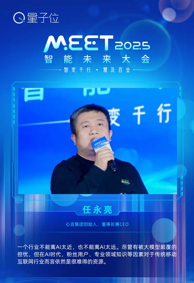心言集团CEO任永亮受邀在2025 智能未来大会上发表主题演讲,分享 AI 在泛心理领域实践经验