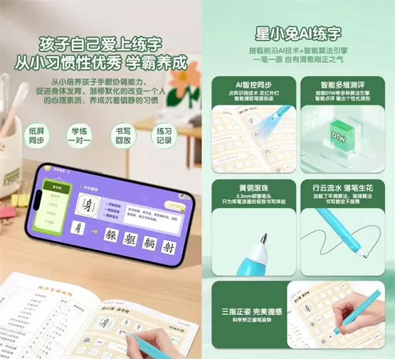 纸屏同步,趣味学练,星小兔AI练字套装,让孩子爱上写字,写好字