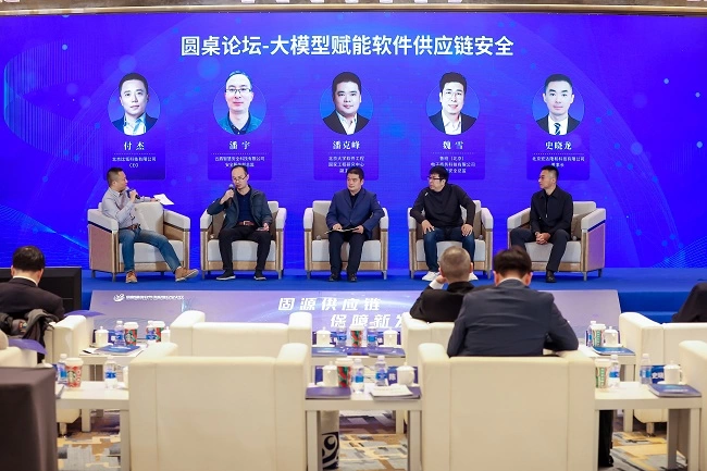 圆桌讨论环节由北京比瓴科技有限公司CEO付杰主持,邀请到联通云盾智慧安全科技有限公司市场部副总经理潘宇、北京大学软件工程国家工程研究中心副主任潘克峰、鲁班(北京)电子商务科技有限公司高级安全总监魏雪、北京宏达隆和科技有限公司董事长史晓龙,共话大模型在软件供应链安全领域的应用及其挑战。