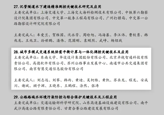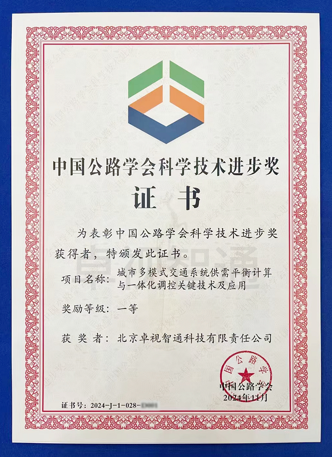卓视智通公司参与的《城市多模式交通系统供需平衡计算与一体化调控关键技术及应用》在众多项目中脱颖而出,斩获科技进步奖一等奖。