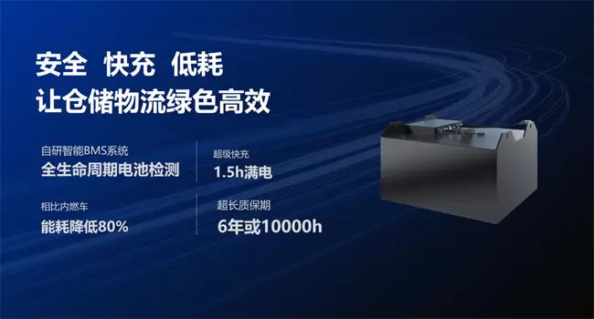 两轮车电池材料体系覆盖磷酸铁锂、锰酸锂、三元等,并提供方形、软包、小圆柱及大圆柱多种形态,目前装机量已突破200万套,并且电池满足两轮车新国标要求。叉车方面,鹏辉能源基于高安全磷酸铁锂体系,相比燃油叉车节省80%以上能耗,已在超70000辆叉车上得到应用,超长6年或10000小时质保政策则进一步降低终端用户的维护与更换成本。
