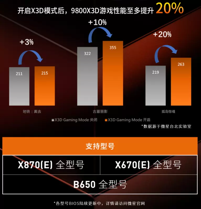 微星AM5主板更新X3D模式,9800X3D性能至多可提升20%