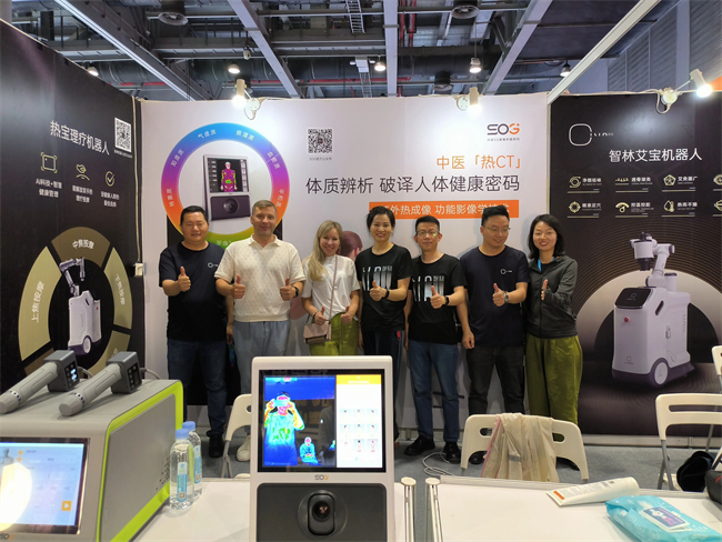 在展会现场,智林机器人的展位汇集了形形色色的观众,在与团队人员的交流中,都同样表现出了对智林机器人极大的兴趣。智能艾灸机器人、理疗机器人、Enoch 哒哒波、鹰眼红外热成像检测仪等多款健康护理产品,让前来体验的观众感受到了智林机器人在健康领域对AI智能科技的创新使用。