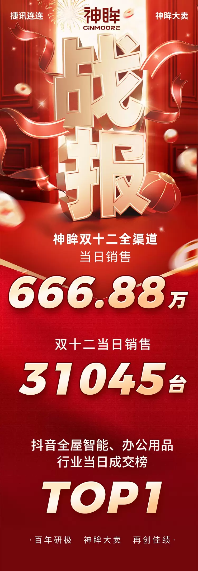 2024年电商“双12”狂欢大促,众多品牌商家花式放送“年底福利”助推国内消费市场扩容。12月12日,低功耗智能影像神眸品牌众高管现身直播间。神眸“高管直播首秀”活动期间,研极副总裁房汝明与营销管理团队,带来百亿品牌背后的视觉芯片产研创业故事,品牌官方下场为消费者破价送福利。直播围观人气破百万,当日冲上抖音全屋智能带货榜、办公用品带货榜,神眸抖音直播间单店GMV环比前一日增长2066%。