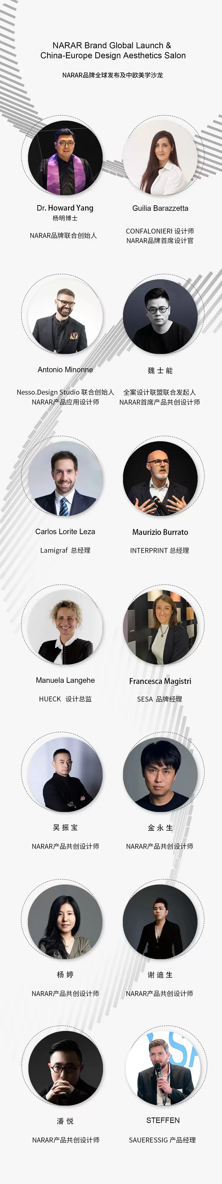 本次成功签约国内外知名设计大师,Guilia Barazzetta为NARAR品牌首席设计官,魏士能、吴振宝、金永生、杨婷、谢迪生、潘悦为NARAR产品共创设计师。