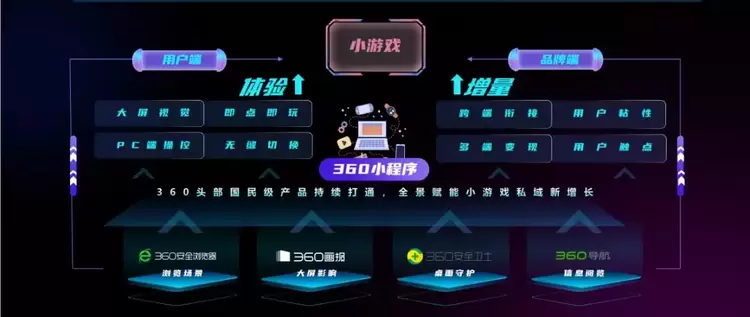 PC端更优的游戏体验将驱使小游戏玩家们大规模地向PC端转移,360智慧商业将持续深耕PC场景下小程序游戏吊起、活跃及留存生态,提升用户体验的同时,通过深化平台合作、商业模式创新,为开发者带来更多流量和营收增长空间。