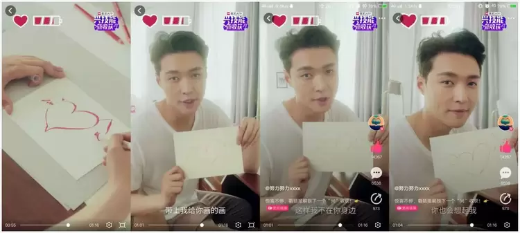然而张艺兴的“兴式情话”第二段显然段位更高,趴在床上读书的张艺兴忽然看向镜头说道:“哎,你脸上有点东西唉。”说完,他露出温柔的微笑和甜甜的酒窝,面对镜头来了一招摸头杀:“有点好看。”猝不及防的土味情话与张艺兴的笑容令不少美拍网友直呼:“受不了了,心脏骤停!”说完情话后,张艺兴便低头继续看书,然而细心的美拍网友却发现他在说完情话以后自己都害羞了:“脖子跟耳朵都在以肉眼可见的速度迅速变红,太可爱了吧!”