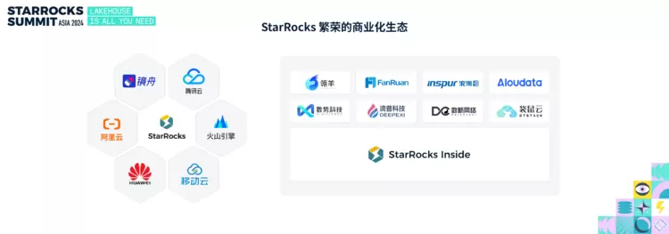 随着 StarRocks 社区用户越来越多,产生的商业化诉求也越来越多,目前有部分厂商提供 StarRocks 的商业化支持。例如,镜舟科技基于 StarRocks 开发了企业级的镜舟数据库,现已在多个行业成功落地。国内领先的云厂商(如阿里云、腾讯云、火山引擎、华为云和移动云)也在各自的平台上推出了 StarRocks 的托管服务。