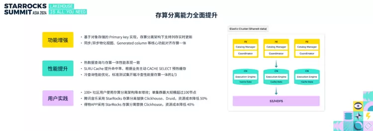 去年 4 月份,StarRocks 3.0 版本正式发布存算分离架构,经过一年半的打磨,存算分离在性能、功能等方面得到全面的提升。