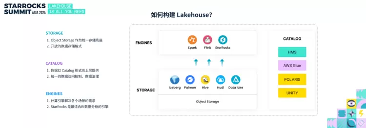 接下来我们聚焦到 StarRocks,探讨如何基于 StarRocks 构建 Lakehouse,只需三步: