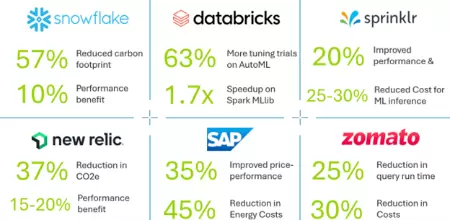 近年来,随着云计算用户将各种云工作负载部署在AWS Graviton处理器上,其软件生态系统持续扩展。如此一来,客户不仅节省了费用,收获了性能的提升,还能优化其碳足迹和可持续发展足迹。以下是部分示例: